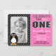 Invitation Pingouin Cute Premier Anniversaire Pink