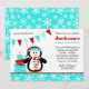 Invitation Pingouin Flamme de neige Turquoise hiver Onederlan