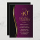 Invitation Pink Black Gold 40e fête d'anniversaire