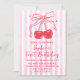 Invitation Pink Bow Fruit Sweet Cherry First Birthday