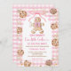 Pink Bow Gingerbread Christmas Cookies Baby Shower Gingham Gold Snowflakes Invitation
