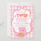 Invitation Pink Bow GinghamLove you TWO pizza birthday