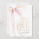 Pink bow girl's 5th birthday invitation. Modern feminine design in blush pink and gold. Features trendy watercolor coquette bow, calligraphy heart script font and modern typography FIVE. Perfect for an elegant style girl's fifth bday celebration. Personalize with your own details. Printed Zazzle invitations or instant download digital printable template.