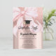 Invitation Pink Bow Grad Cap Rose Gold Glitter Graduation