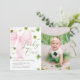 Pink Bow Lucky One Shamrock Clover 1st Birthday Invitation