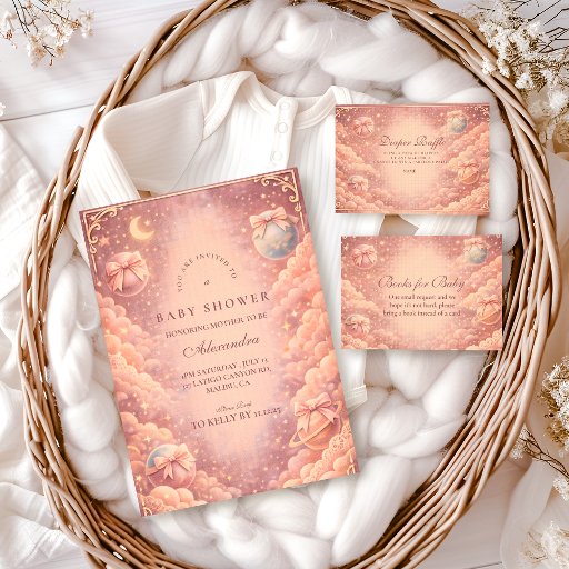 Invitation Pink Celestial Bows Clouds Baby Shower