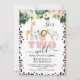 Pink Cheetah Imprimer She's Two Wild 2nd Birthday Invitation Girl's safari deux invitation d'anniversaire sauvage avec un léopard ou un motif imprimé de guépard autour du bord et un arrangement floral tropical au sommet. Idéal pour un safari deux fêtes d'anniversaire de deuxième fille à thème sauvage.