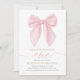 Celebrate your child's first birthday with this elegant pink watercolor bow themed invitation.
