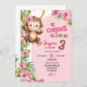 Invitation Pink Curious Monkey Savannah Theme Birthday