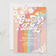 Invitation Pink Daisy Rainbow Hippie Baby shower rétro des an