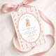 Celebrate your little bunny with this sweet baby shower invitation featuring soft pink stripes, vintage roses, and an adorable watercolor bunny illustration.