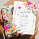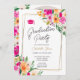 Invitation Pink floral vert chic or script graduation