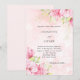 A soft pink background decorated with pink flowers, green and faux gold foliage. Personalize and add your names and the details.