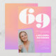 Invitation Pink Gradient Retro Photo 69e anniversaire Invitat