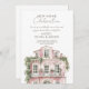 Celebrate your new home with this elegant pink watercolor house housewarming invitation. The design features a charming illustration of a beautiful pink house adorned with lush greenery and white roses, creating a romantic and welcoming atmosphere.