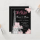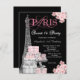 Paris Sweet 16 anniversaire invitation avec belle tour Eiffel en argent, forfaits cadeaux Paris élégants, chaussures talon parties scintillant en argent et script Paris rose sur un riche arrière - plan rose floral. Cette belle invitation d'anniversaire Paris sweet sixteen est facilement customisée pour votre événement en ajoutant simplement vos détails dans le style de police et de couleur, et la formulation de votre choix. Il s'agit d'un design imprimé sans véritable diamants, bijoux, parties scintillant, etc.