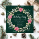 Cette invitation festive festive amusante et festive comprend une couronne de Noël aquarelle avec poinsettias roses et saint sur un arrière - plan vert foncé. Le texte combine écriture manuscrite et polices serif pour un look élégant et sophistiqué. Il est parfait pour les fêtes de vacances, brunches, dîners, open house et plus encore.