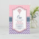 Invitation vos amis et proches avec cette montgolfière rose et lavande 1er anniversaire invitation fête qui est décoré avec des rayures pois et chevrons.