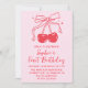 Invitation Pink & Red Bow Cherry Fruit 1st Birthday Party