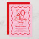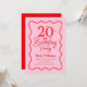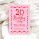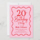 Invitation Pink Red Retro 20th Birthday Wavy Border