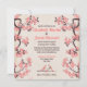 design faire-part de mariage avec des fleurs de sakura rose sur arrière - plan parchemin avec deux lovebirds.