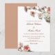 This contemporary minimalist wedding invitation features apricot pink white 3 dimensional wildflowers on a white gray background.