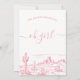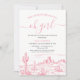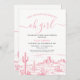 Pink Wilderness Adventure Begins Baby shower Invitation Desert Wilderness thème l'aventure commence baby shower invitation des filles avec une scène bleu désert et de calligraphie décorative en tête de police. D'autres couleurs sont disponibles au magasin.
