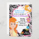 Pink Zebra spa invitation à la fête avec une jolie fille fleurs et produits de beauté.