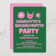 Invitation PinkGreen Handwriting Retro Bachelorette Party