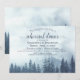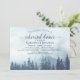 Cette invitation à la répétition mariage rustique présente une scène de nature sauvage de montagne en plein air d'une forêt de pins bleus entourée de brouillard ou de brouillard. Le lettrage est fait en calligraphie de script dentée, lui donnant une touche d'élégance. Parfait pour un mariage extérieur, de pays ou de destinations.