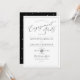 Invitations du PixDezines Engagement Party avec un script de calligraphie classique en noir et blanc avec cadre amovible.