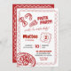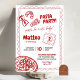 Invitation d'Anniversaire de enfant de la fête de la pizza moderne, tranche de fête d'anniversaire amusante, fête d'anniversaire de la pizza rouge, fête d'anniversaire de la fabrication de la pizza, pizza rouge illustrée et pâtes 1er anniversaire, Ciao Pasta Baby Anniversaire de enfant Invitation, main dessinée chef italien Pasta Anniversaire
