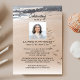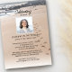 Une belle invitation de célébration de la vie pour quelqu'un qui aimait l'océan et se promener le long de la plage. Le devant présente une photo de fond d'une plage paisible avec des empreintes de pas dans le sable. (Vous pouvez remplacer la photo de fond par l'une des vôtres) Ajoutez facilement une photo de votre proche et les détails de votre célébration. Le verso offre un espace pour une photo et un poème ou une écriture (ou supprimez). Le modèle est très facile à utiliser et à modifier - créez une invitation unique et belle qui sera chérie pour toujours.