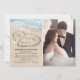 Nous avons répondu à l'invitation de célébrer avec le littoral bleu de l'océan, un coeur sculpté dans le sable, une photo du couple heureux, et un modèle marié qui est facile à personnaliser.
