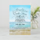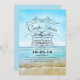 Elégants couples de plage vintage / rétro douche invitations avec mer turquoise, ciel et sable de plage.