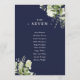 Ces numéros de table de mariage élégants en bleu marine avec feuilles de verdure botanique peuvent être personnalisés avec votre plan de table pour vos invités, dans une typographie chic. Les cartes sont imprimées au recto et au verso (double face). Conçus par Thisisnotme©
