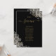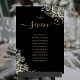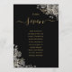 Ces élégants numéros de table de mariage gothique noir et or avec des roses peuvent être personnalisés avec le plan de table de vos invités dans une typographie chic. Les cartes sont imprimées au recto et au verso (recto-verso). Conçu par Thisisnotme
