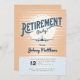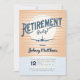 Envolez-vous vers la retraite avec cette invitation captivante ! Contre un coucher de soleil demi-tonique dans les tons vintages orange et bleu, une silhouette d'avion prend son envol, symbolisant le voyage dans un nouveau chapitre de détente et d'aventure. Parfait pour célébrer le début de votre retraite bien méritée !