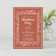 Invitation de fête de Noël moderne et élégante. Illustration de plantes, feuilles et baies dessinés à la main sur arrière - plan rouge terre cuite. Ajoutez votre texte.