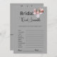 Présentez notre Printable Bridal Word Scramble, un ajout sophistiqué et personnalisable à votre douche nuptiale moderne! Ce jeu captivant est doté d'un arrière - plan gris épuré, orné de textes gris et noirs, créant un design élégant et minimaliste qui complète parfaitement l'atmosphère contemporaine de votre célébration. La couverture frontale affiche fièrement le titre "Bridal Word Scramble" dans une police attrayante, accompagnée d'instructions concises et faciles à suivre, assurant un début sans heurts du jeu. Mais ce n'est pas tout ! Notre course à mots nuptiaux imprimables va de l'autre mille pour apporter une touche de nature à votre journée spéciale. L'avant est joliment décoré d'un joli plante en pots avec de délicats feuilles rose, blanc et vert. Cette subtile illustration botanique ajoute une touche de douceur et de beauté naturelle au jeu, créant un élément visuel délicieux qui ajoute une touche de chaleur. À l'intérieur, vos invités se lancent dans un défi engageant. Avec 10 mots soigneusement brouillés, ils vont démêler et déchiffrer les termes liés à la nuptiale, en faisant l'expérience d'un merveilleux voyage d'amusement et de compétition amicale. La mise en page est pensée, offrant un espace suffisant pour que les participants écrivent leur nom et suivent leurs scores, favorisant un gameplay interactif et engageant. Pour ajouter une touche personnelle, l'arrière de l'imprimable montre le nom de la future mariée, la date de la douche et les noms des hôtes généreux. En outre, une clé de réponse est incluse, assurant une note pratique et rendant le résumé du jeu sans effort. Notre mot nuptiale gravée n'est pas seulement une activité amusante et interactive, mais aussi un gardien élégant qui saisit l'essence de l'élégance moderne. Que vous cherchiez à divertir vos invités, à créer des souvenirs chéris, ou tout simplement à ajouter une touche de sophistication botanique, notre jeu personnalisable est un must absolu. Avec son design épuré, ses détails soignés et sa charmante illustration botanique, notre bridal scramble imprimable est un point fort de votre douche inoubliable.