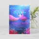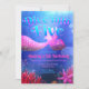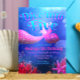 Cette invitation utilise le bleu et le rose comme palette de couleurs principale. La profondeur dans le design est prise en compte en faisant apparaître les poissons très éloignés du point de vue principal. Les effets d'éclairage sont utilisés en particulier dans la queue de sirène, pour en faire la star du design