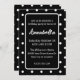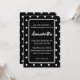 Cette invitation à la fête d'anniversaire personnalisée comporte un motif à pois funky. Les pois blancs sont carrelés sur un arrière - plan noir. Une zone noire au centre contient les informations de la fête. Le nom de l'invité d'honneur est imprimé dans une police de caractères élégante.