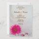 Invités Invitations pour célébrer la mariée et le marié le matin après leur cérémonie de mariage avec la jolie Pink Daisy et Buttons Post Mariage Brunch Invitation. Cet élégant bouton personnalisé sur le thème After Mariage Breakfast or Luncheon Invitation présente une photo florale d'une fleur de marguerite rose gerbrée, voile de mariée blanc, diverses perles vintages et boutons de diamant rose avec un arrière - plan satiné blanc. Disponible sous forme d'invitation imprimée à l'envoi ou en téléchargement numérique pour un partage numériquement en ligne facile.