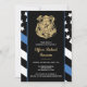 Honor the dedication and hard work of a new law enforcement officer with this customizable police graduation invitation. Featuring a police badge and the police force flag with bold black and white stripes and a proud thin blue line, this design symbolizes strength, service, and sacrifice. The invitation is personalized with the graduate’s name and party details, making it a memorable keepsake for friends, family, and fellow officers. Perfect for celebrating a police academy graduation, promotion, or milestone in a future officer’s career. Invite your guests in style and show support for the newest member of the thin blue line community.