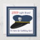 Ces invitations super-cool à la fête d'anniversaire sont idéales pour votre futur policier ou femme de police. L'invitation présente un ajustement bleu marine autour des bords. Le carré du centre est blanc, avec des garnitures bleu marine et argent. À l'intérieur du carré blanc du centre se trouve un casquette de police bleu marine. Ce casquette de police a un cadre jaune et un badge argent. Au-dessus et au-dessous du casquette de police se trouve le texte en caractères bleu et rouge de la marine qui dit "ARRÊTEZ-VOUS juste là ! Il est temps de s'amuser pour l'anniversaire !" cependant, le texte peut être customisé pour répondre à vos besoins. Le revers de l'invitation a la même finition bleue et la même zone de carré centre blanc, bleu et argent. Le texte est tout en bleu marine et est entièrement personnalisable. Il y a deux casquettes de police plus petits, un dans chaque coin inférieur de l'invitation à thème du policier. Le choix idéal pour l'invitation du garçon ou de la fille qui aime faire semblant de jouer à la police, homme ou femme, pour les fêtes à thème de flic, et pour les enfants de policiers, hommes et femmes !