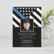 Cette conception comprend un drapeau de la police avec des rayures noires et blanches, ainsi qu'une mince bande bleue. Une photo de l'officier est au-dessus de tous les détails du parti pour l'officier d'application de la loi, le shérif, le capitaine ou les chefs du parti de retraite qui prend sa retraite.