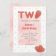 Invitation d'anniversaire à thème fraise. Laisser brillant avec des fraises. Sweet Polka point détail à l'envers. Rouge et rose. Parfait pour bébé ou tout-petit deuxième 2e anniversaire 2, éditer facilement un texte amusant moderne. S'intègre avec tutti fruité / twotii fruité thème de fête ou de sucré de baies. Trouvez des accessoires correspondants dans le magasin Gemma Harlow Creations ou transférez le design à vos produits préférés.