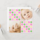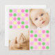 Montrez deux photos de votre bébé chéri dans ce point de polka et dans cette disposition carré. Ajoutez tous les détails personnels de votre bébé sur le dos pour que vos amis et votre famille puissent les voir!