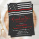 Invitation Pompier Diplômé Mince Red Line Flag Fireman