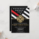 Célébrez avec style l’exploit durement mérité de votre pompier grâce à cette invitation personnalisée à la fête de remise des diplômes des pompiers. Doté d'un drapeau de pompier audacieux à rayures noires et blanches, d'une ligne rouge mince symbolique et d'un insigne de service d'incendie en or classique, cette invitation rend hommage au courage et au dévouement de votre diplômé. Parfait pour les fêtes de fin d'études de pompiers, les célébrations de l'école de pompiers ou l'honneur d'une nouvelle carrière dans la lutte contre les incendies, cette invitation met en évidence leur service et leur héroïsme. Personnalisez avec le nom de votre pompier, la date d’obtention du diplôme, l’heure et les détails de la fête. Idéal pour les fêtes sur le thème des pompiers, les célébrations familiales des pompiers et les diplômes des pompiers.